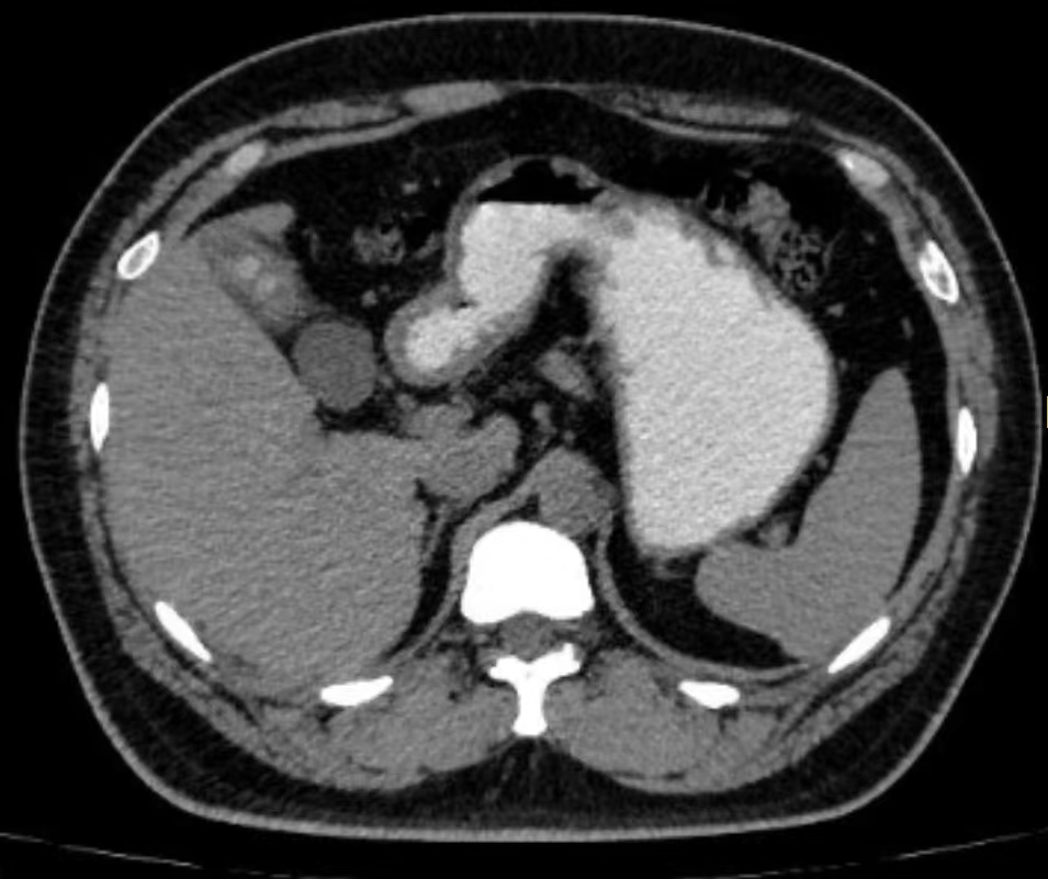 患者,青年男性,查体发现胆囊壁增厚已有3年。医院就诊:CT显示胆囊体部隔膜形成,胆囊底部胆汁引流不畅,胆囊结石形成,胆囊壁炎性增厚。胆囊结石、胆囊壁>3mm、胆囊萎缩、胆囊畸形、瓷化胆囊是胆囊癌的危险因素,应及时行胆囊切除术。