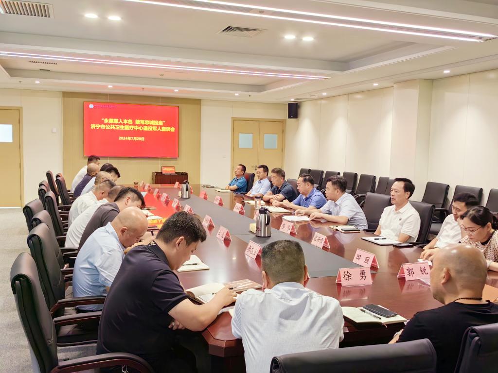 为庆祝中国人民解放军建军97周年,7月29日下午,济宁市公共卫生医疗中心召开2024年度退役军人座谈会。医院党委书记侯春生出席会议并讲话。会议由党委副书记、院长刘仍强主持。医院领导班子成员出席会议,在职退役军人代表及相关职能部门负责人参加座谈会。