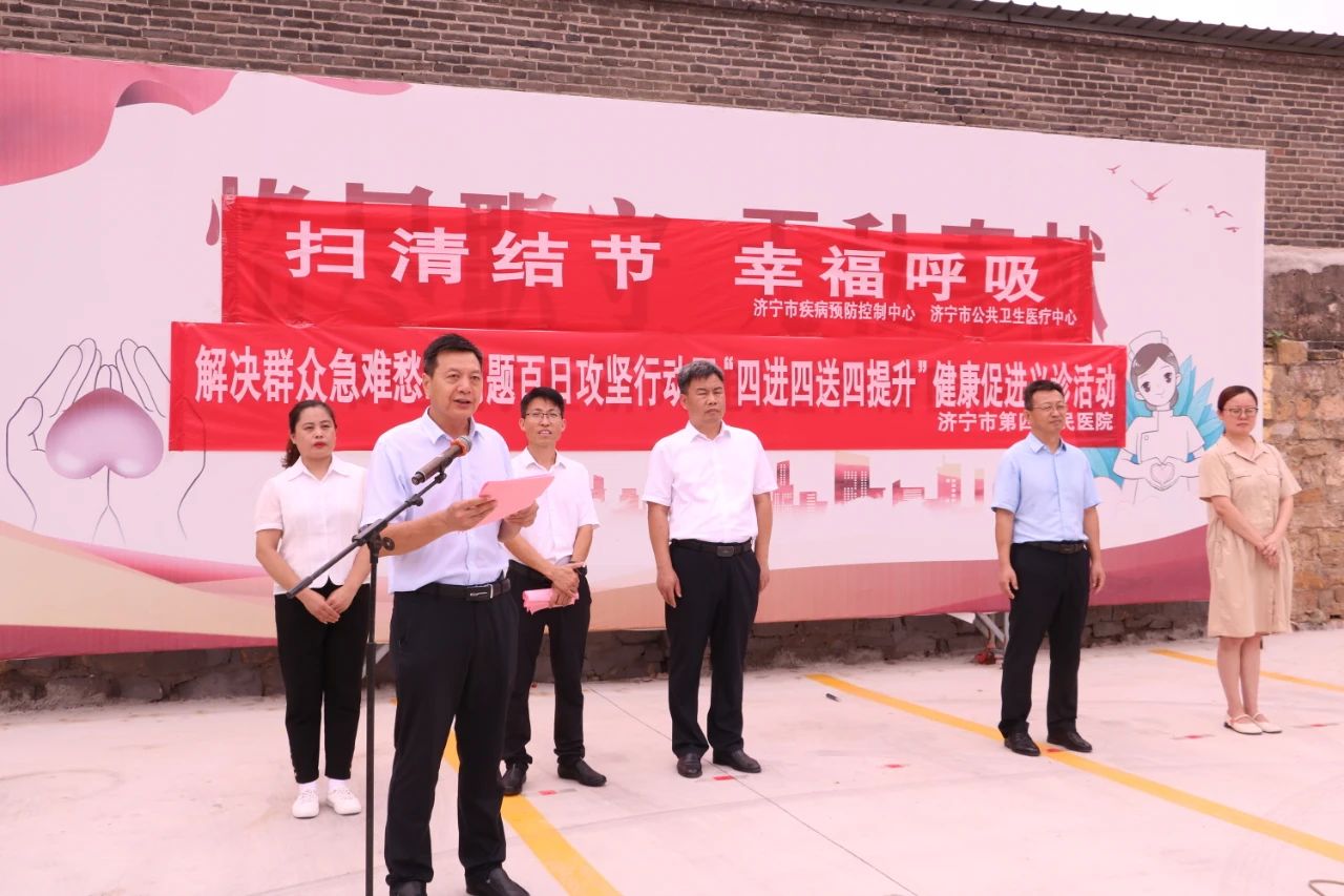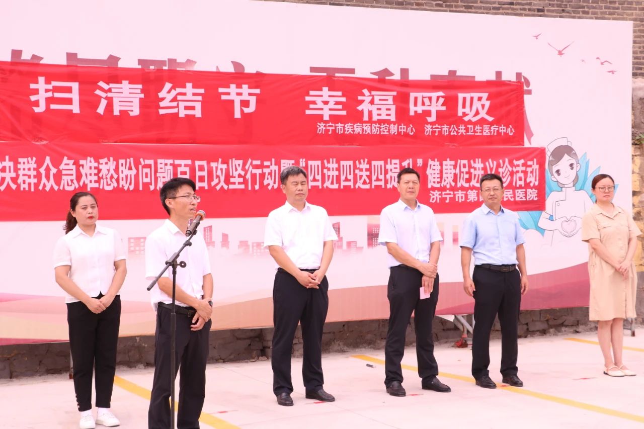 济宁市疾病预防控制中心结核病防制科科长王道桥,济宁市公共卫生医疗中心党委副书记、院长刘仍强,济宁市卫生健康委员会经开区管理办公室党组书记、主任刘晓伟,济宁市公共卫生医疗中心党委委员、副院长吴福仓,济宁市疾病预防控制中心结核病防制科副科长柴海燕,疃里镇政府党委委员、宣传委员付鹏出席活动。