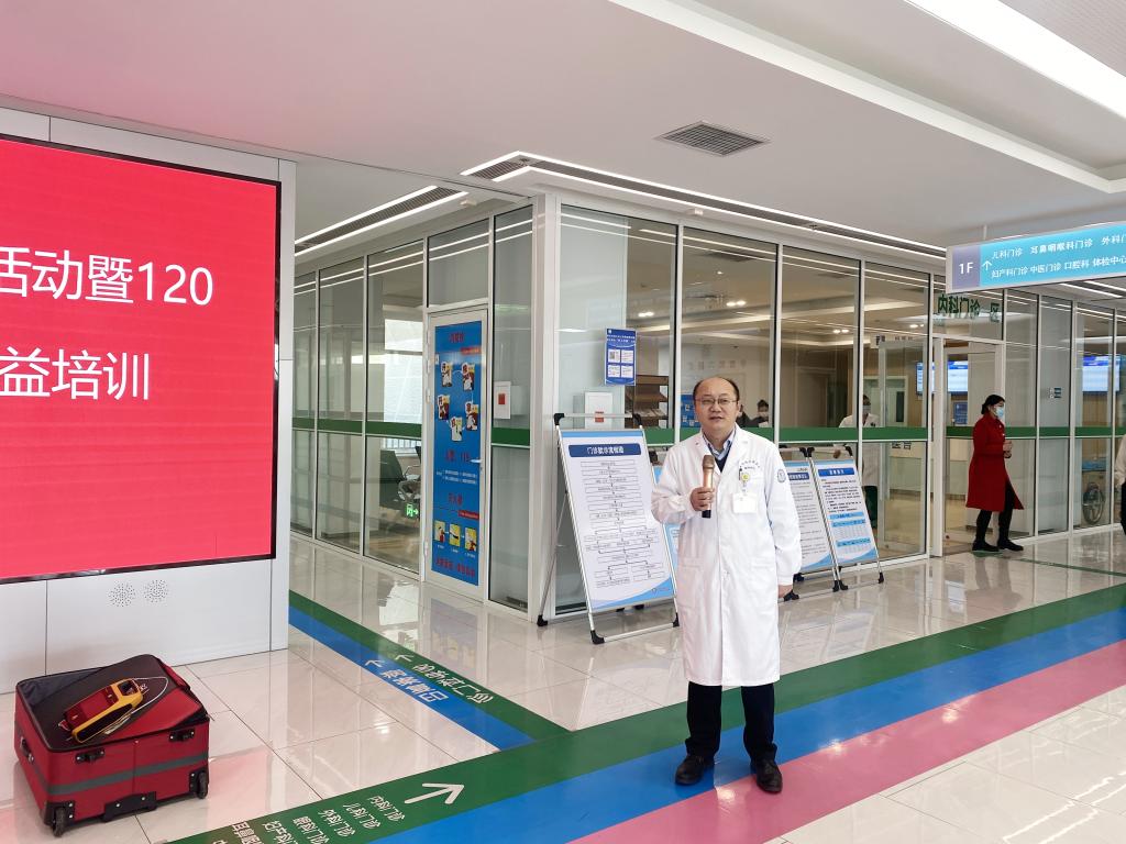 本次活动由我院医教科主任、副主任医师闫绪锋主持。由医院急诊科组成的急救团队,通过生动形象的现场讲解和实操演练,向广大居民普及了心肺复苏术、海姆立克急救法和止血包扎术等实用急救技能。