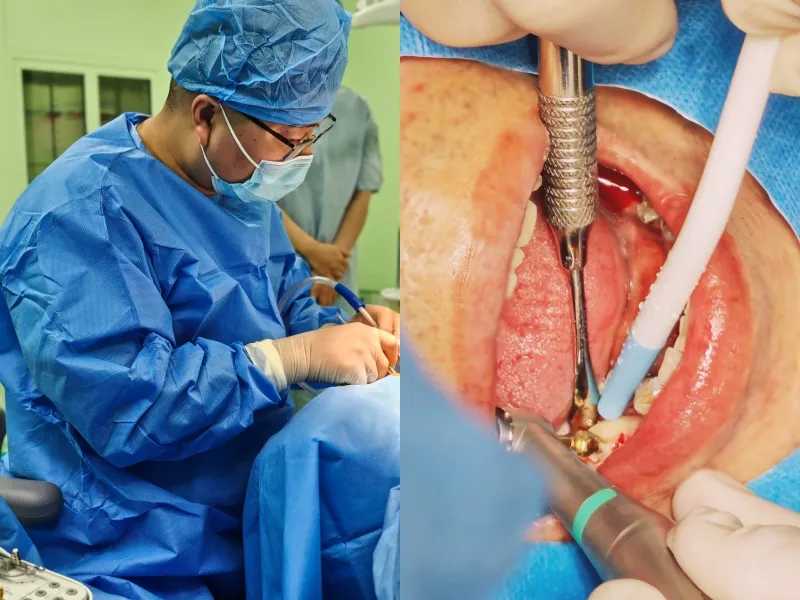 此次手术针对患者下颌牙齿问题,需同步完成6颗牙拔除、种植体植入,同时进行植骨与覆盖骨膜操作。面对复杂的诊疗需求,口腔科团队凭借精湛的技术和丰富的经验,严格遵循微创诊疗理念,精准把控手术每个环节。最终,手术用时55分钟顺利完成,且患者在术中及术后均未出现明显不适。诊疗效果得到患者高度认可。