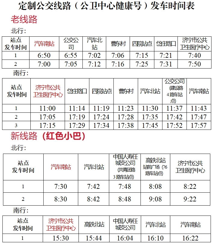 为提升群众患者就医便捷度,自2024年5月15日起,济宁市公共卫生医疗中心对定制公交线路(公卫中心健康号)进行优化调整。