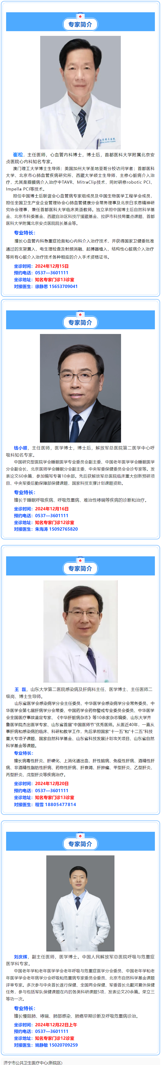 2024年12月15日—12月22日,国内知名专家坐诊信息请查收!