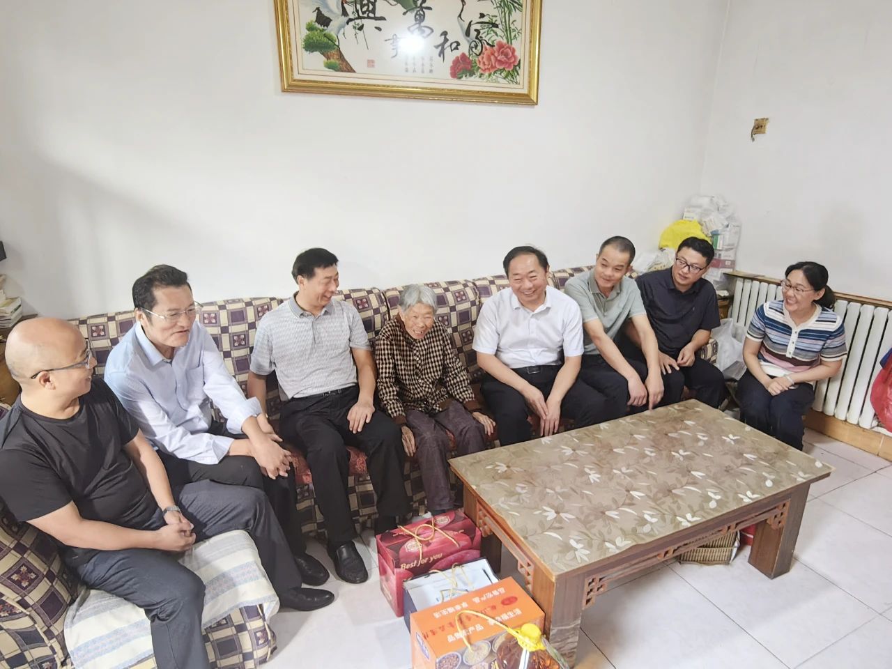 党委书记侯春生等院领导及部分科室负责人来到老干部杨振霄老人家中,详细询问她的身体状况和家庭情况,感谢她为医院发展作出的重要贡献,认真倾听了她的心声与需求,并送上精心准备的慰问品,使老干部真正感受到党的关怀和温暖。