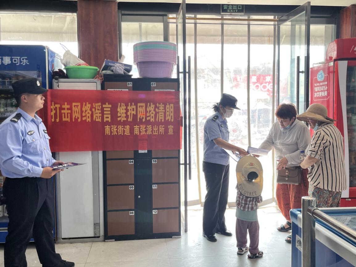 7月26日,南张派出所深入辖区超市开展打击网络谣言宣传活动。