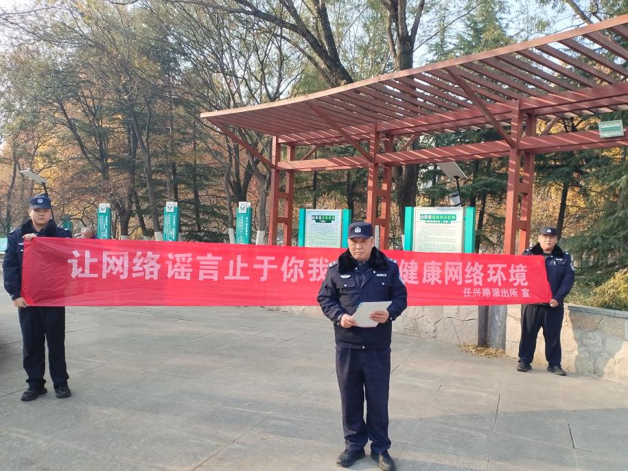 12月10日,任兴路派出所持续组织民辅警深入辖区公园、小区等人员密集场所,开展打击整治网络谣言宣传活动。