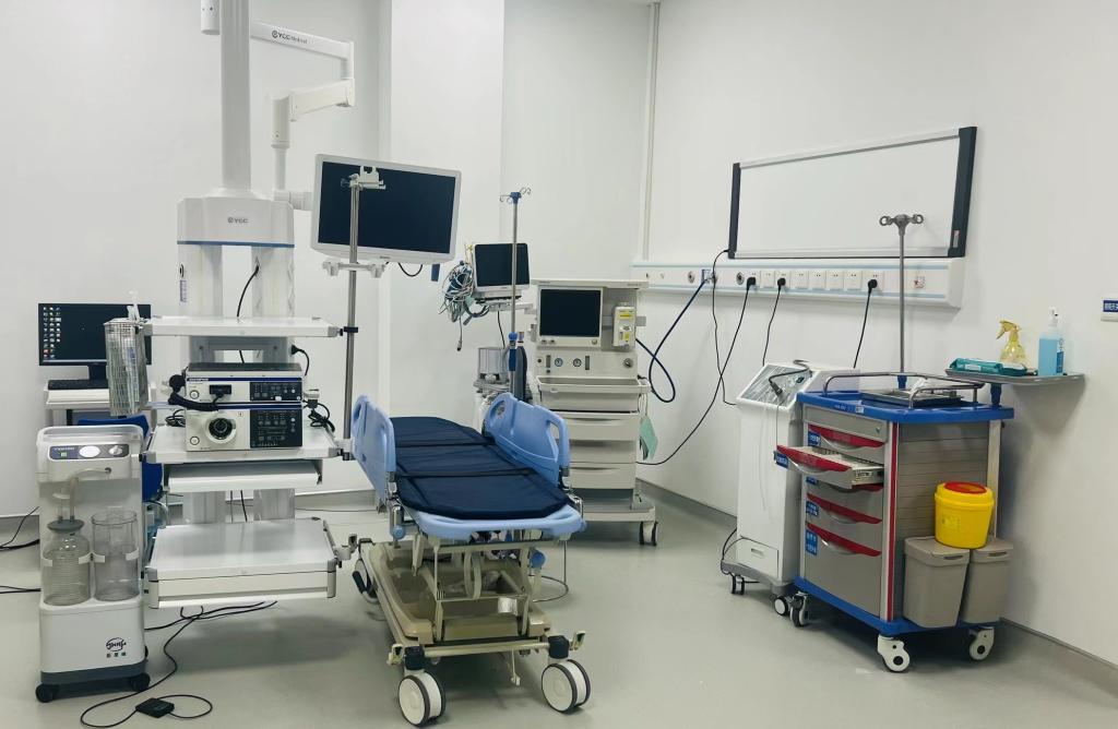 内镜中心拥有目前世界最先进的奥林巴斯CV-290电子支气管镜、电子胃肠镜、奥林巴斯CV-290电子支气管镜超声系统一套、奥林巴斯CV-290支气管镜超细支一条、及多条奥林巴斯CV-290电子支气管镜检查、治疗镜。其中,奥林巴斯CV-290电子胃镜2条、肠镜条、电子治疗胃镜2条。内镜主机系统6套,库兰冷冻仪3台、虚拟导航系1套、APC治疗仪、心电监护仪、呼吸机等各种辅助治疗设备。并与麻醉科紧密联系,由经验的麻醉师来进行麻醉工作。此外,还引进了先进的内镜自动洗消机和内镜清洗追溯系统。一流的设备和高标准严规范的消毒流程为患者提供安全检查及治疗。