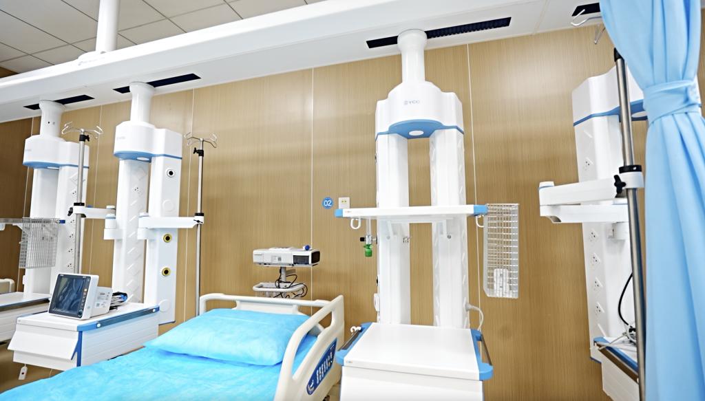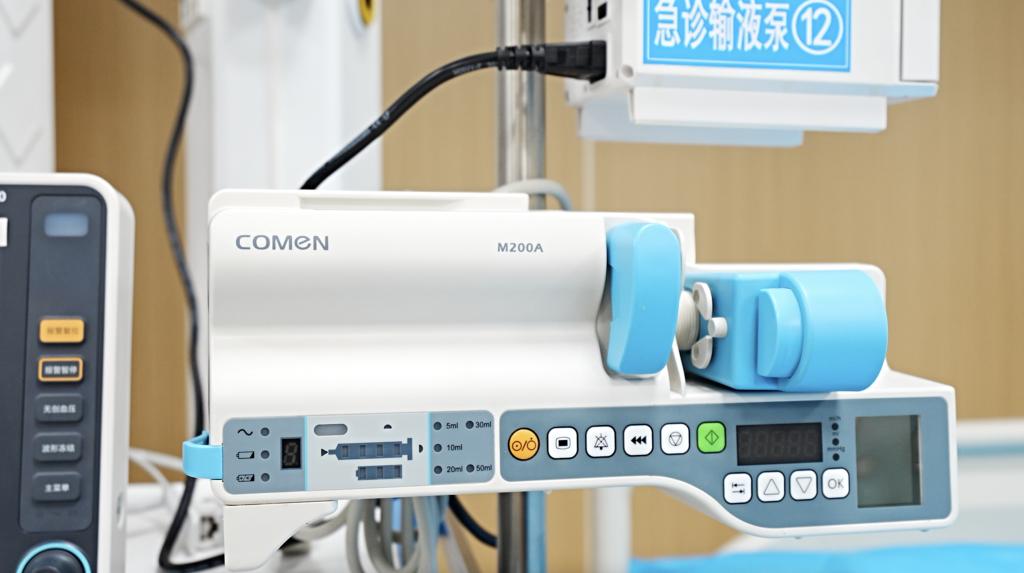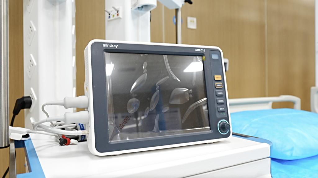 各医疗区配备了多种先进急救设备,如观察诊疗区装有现代装置的吊塔,配有四张床,配备多功能心电血压监护仪,输液泵,全自动心电图机等;抢救间配有除颤仪、呼吸机、负压吸引器、心肺复苏仪等;洗胃室配有全自动洗胃机等先进设备。